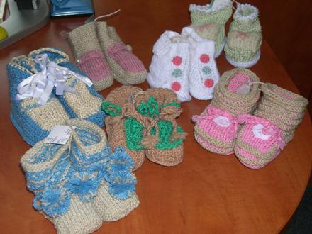 Sedm párů pletených kojenecké bačkůrek poslala první soutěžící, paní Danuše P. z Úpice.