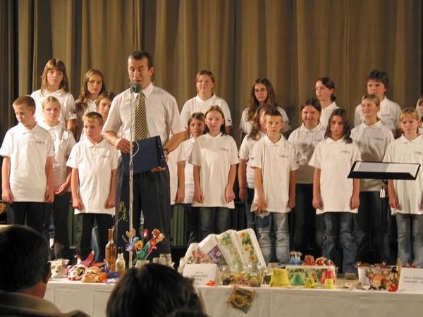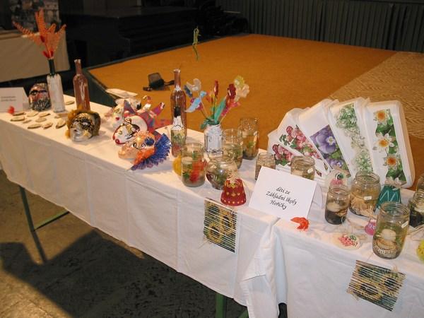 Výrobky dětí ze Stacionáře sv. Františka z Rychnova nad Kněžnou; Kříže-dřevořezba J. Čech HK; Dáma z proutí L. Borůvková Č. Skalice; Umělecké fotograf