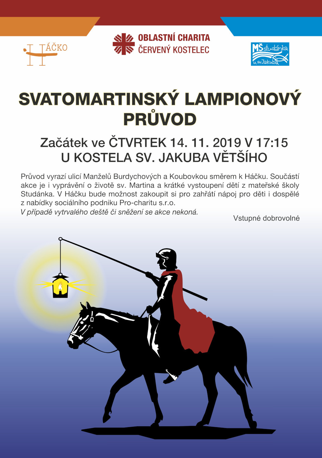 Svatomartinský lampiónový průvod vyjde od Kostela sv. Jakuba Většího - sraz je po dětské mši svaté přibližně v 17:15.