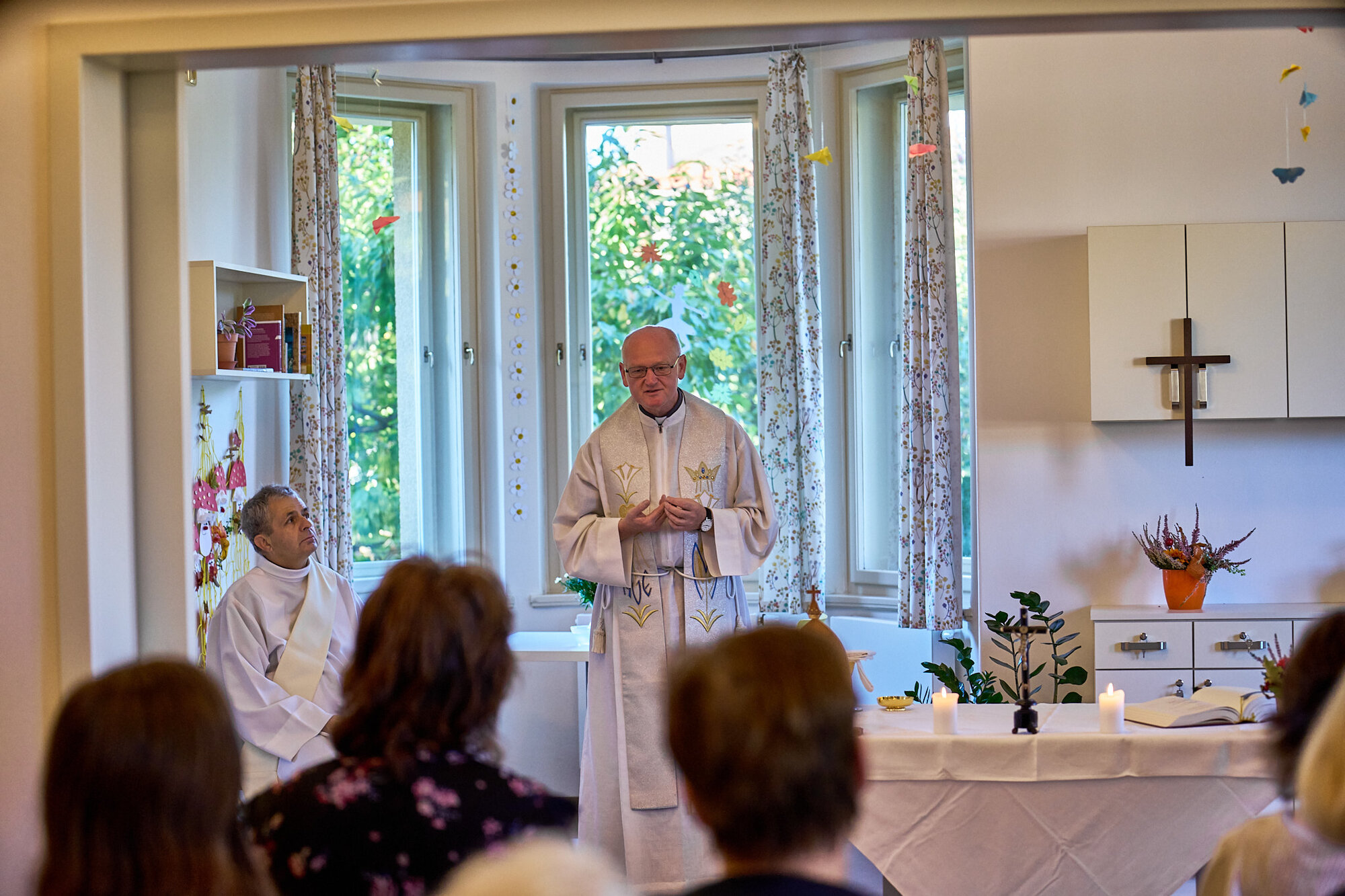 „Naším posláním je činit pokání nejen za sebe, ale i pro druhé,“ řekl při svém kázání P. Jaroslav Brož, který při příležitosti tohoto svátku slavil mši svatou. Slavnostní mše s komorní účastí probíhala ve společenské místnosti Denního stacionáře a v jejím závěru byla vysvěcena celá budova, ve které je poskytována nejen služba stacionáře, ale i Charitní pečovatelská služba a Tísňová péče. Obě služby jsou v sousedství nově připravovanému zázemí pro další služby, včetně Mobilního hospice Anežky České a po dokončení tak vznikne Centrum denních a terénních služeb, celé zasvěcené sv. P. Piovi z Pietralcini, světci, který svůj život zasvětil službě nemocným a kajícím.